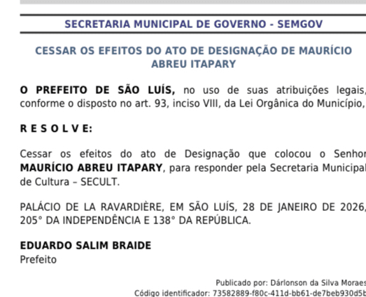 O prefeito de São Luís, Eduardo Braide (PSD), mostrou mais uma vez que não tem um mínimo de apreço pelos seus aliados políticos e/ou amigos. O gestor demitiu o secretário municipal de Cultura, Maurício Abreu Itapary, do cargo nesta quarta-feira (28), aparentemente sem nenhum motivo de desagravo à sua conduta.