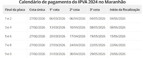IPVA 2026 no Maranhão: Veja o calendário de pagamentos