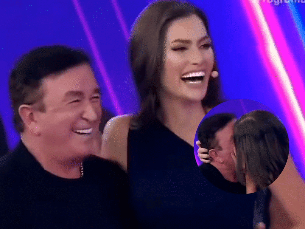 Amado Batista e a esposa trocam declarações e dão beijão no “Programa Silvio Santos”
